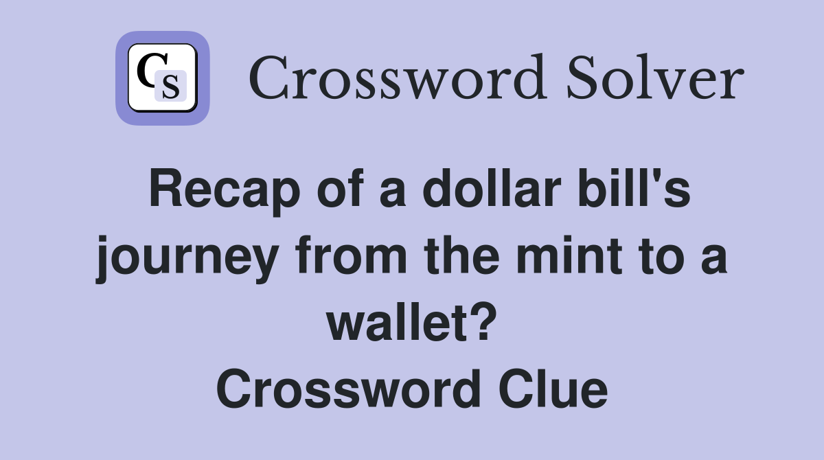 Recap of a dollar bill's journey from the mint to a wallet? Crossword