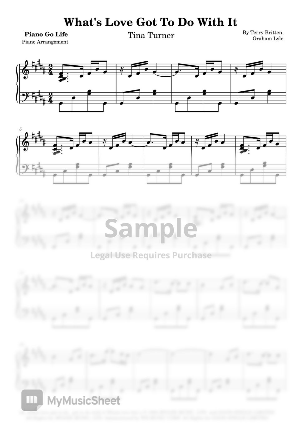 Tina Turner What's Love Got To Do With It Sheets by Piano Go Life