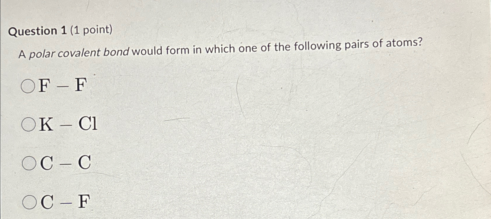 Solved Question 1 (1 point)A polar covalent bond would form