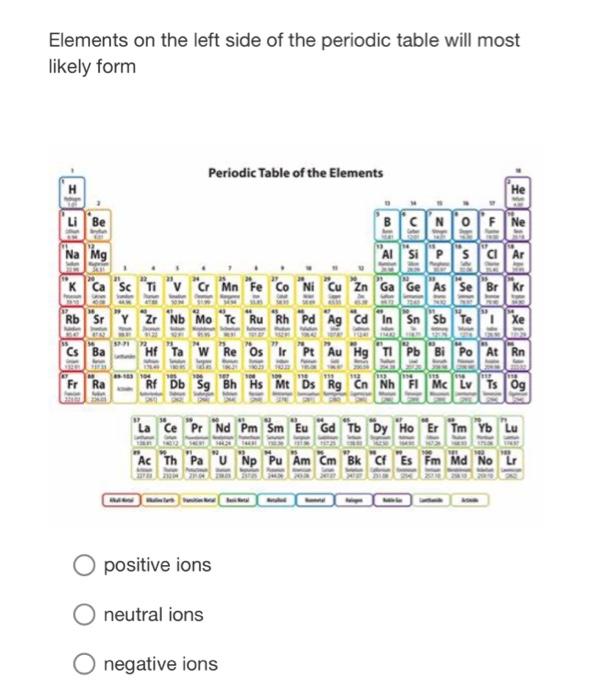 Which Is Most Likely to Form a Negative Ion DeborahkruwHogan