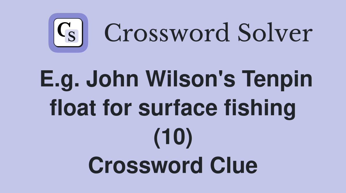 E.g. John Wilson's Tenpin float for surface fishing (10) Crossword