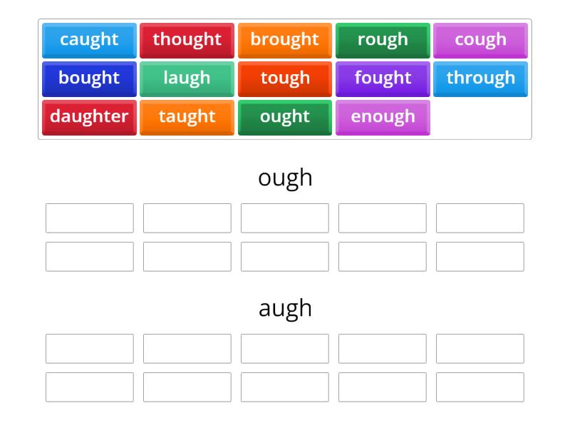 Spelling Words with ough or augh Group sort