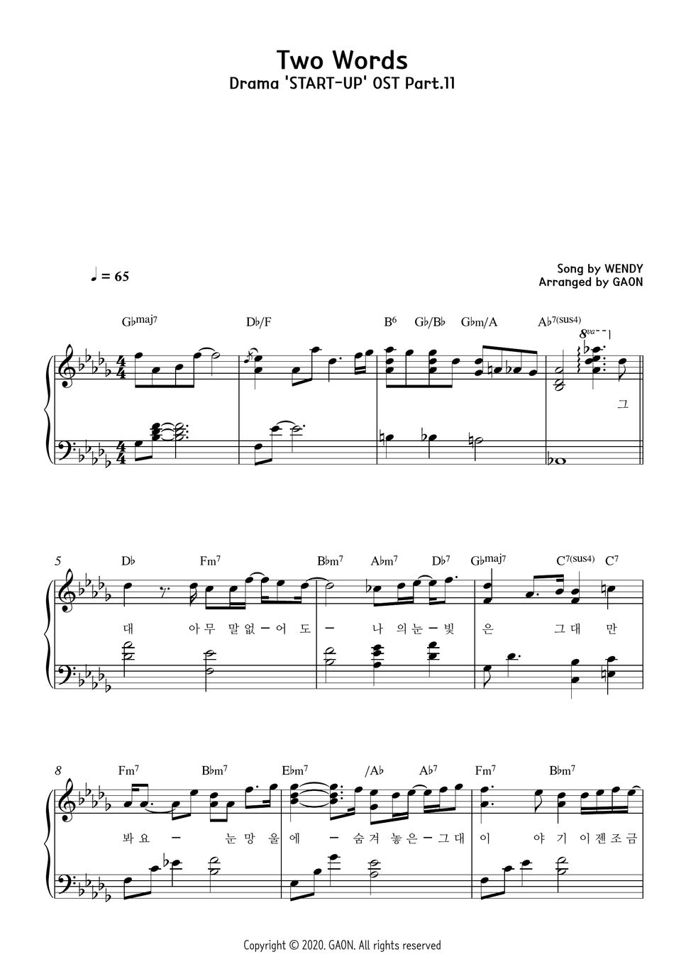 WENDY Two Words ('STARTUP’ OST) Sheet by GAON