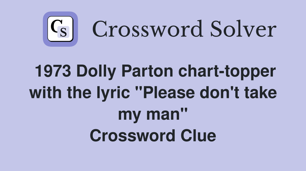 1973 Dolly Parton charttopper with the lyric "Please don't take my man