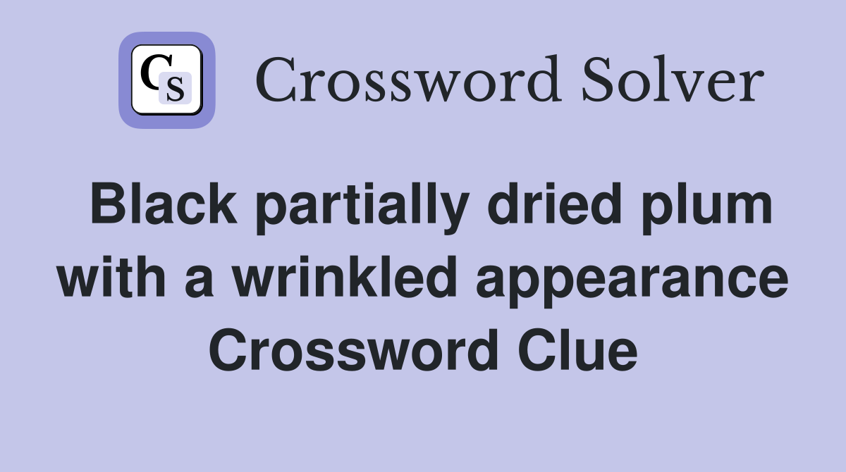 Black partially dried plum with a wrinkled appearance Crossword Clue