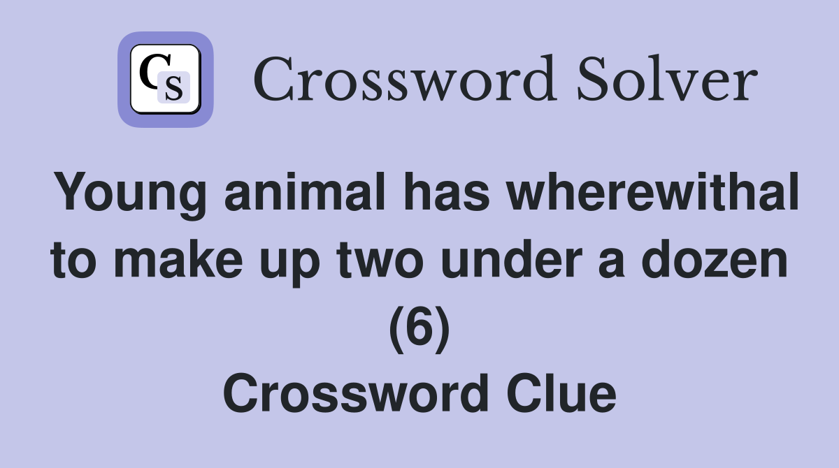 The crossword solver finds answers to classic crosswords and. The crossword solver finds answers to classic. We have found 40 possible answers for this clue in. The crossword solver found 30 answers to young animal, 4 letters crossword clue. All crossword answers with 6 letters for young animal found in daily crossword puzzles: